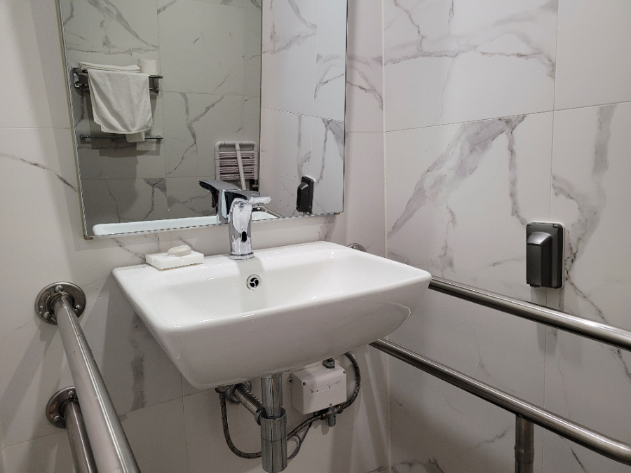 세면대도 센서로 작동하는데요, 수온도 자동 조절이 되는 것 같았어요.
