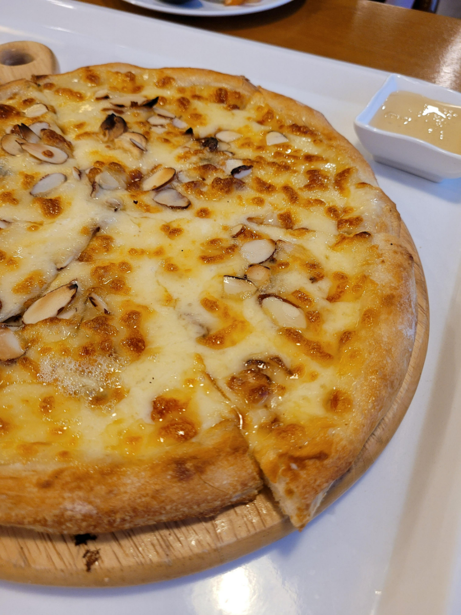 고르곤졸라 피자도 도우가 바삭하고, 꿀과 함께 찍어먹으니 맛있었어요. 꿀도 야무지게 한 차례 리필해서 먹었네요...