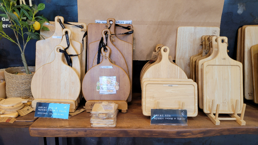 빵집 이름인 "브레드보드"답게, 도마 굿즈를 많이 팔고 있더라고요.
