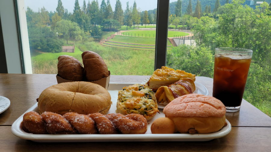 리조트 들어오면서 봤을 때는 이리 큰 규모인지 몰랐는데, 단독 건물로 운영되고 있더라고요. 천안시에서 인증한 빵 명소라고 하네요 :)