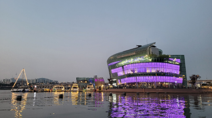 In October, Sebit Island was adorned with pink lights as part of the breast cancer awareness campaign. It was my first time seeing the pink illumination, and it was quite impressive. Additionally, we could enjoy the night fountain show of Banpo Bridge in the background, making the experience even more stunning.