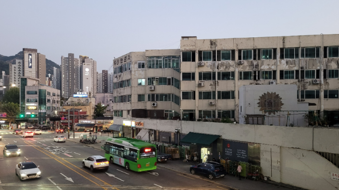 유진상가는 50여 년 전 타워팰리스 같은, 우리나라 최초의 주상복합 건물이었어요. 외관이 많이 낡았지만, 군사적인 목적으로 지어진 건물이기도 해서 굉장히 튼튼하다고 합니다... 빨리 개발이 돼서, 서북권 랜드마크로 거듭나길 바라고 있는 중이에요.