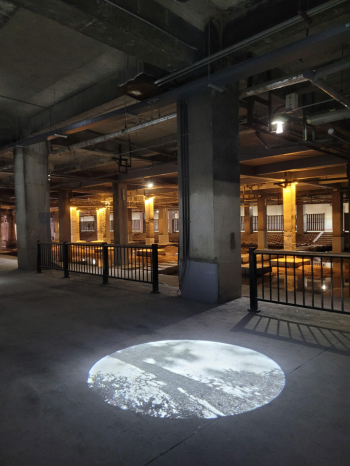 이 곳에는 자연의 그림을 담은 원형의 조명이 어두운 산책로에 하나씩 띄워져 있어요.
