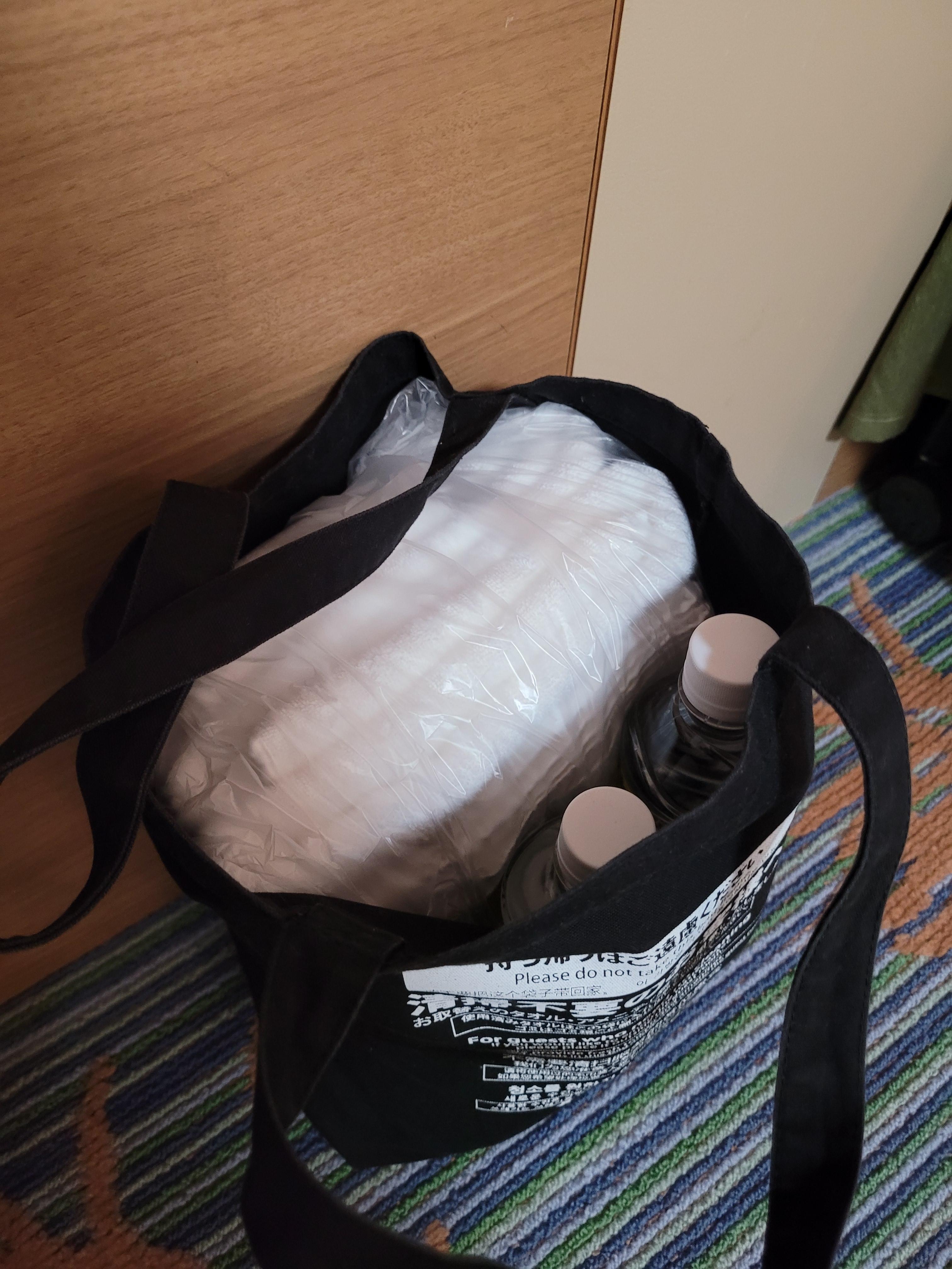 룸 청소는 오전 10시까지 프론트에 요청을 해야 받을 수 있는데요, 저희는 이틀에 한 번씩 청소를 받았어요. 청소를 안 한 날은 에코백에 수건과 생수를 넣어서 호텔 방문 앞에 놓아주십니다. 다 쓴 수건은 다시 에코백에 넣어서 문 앞에 두면, 수거해 가시더라고요.
