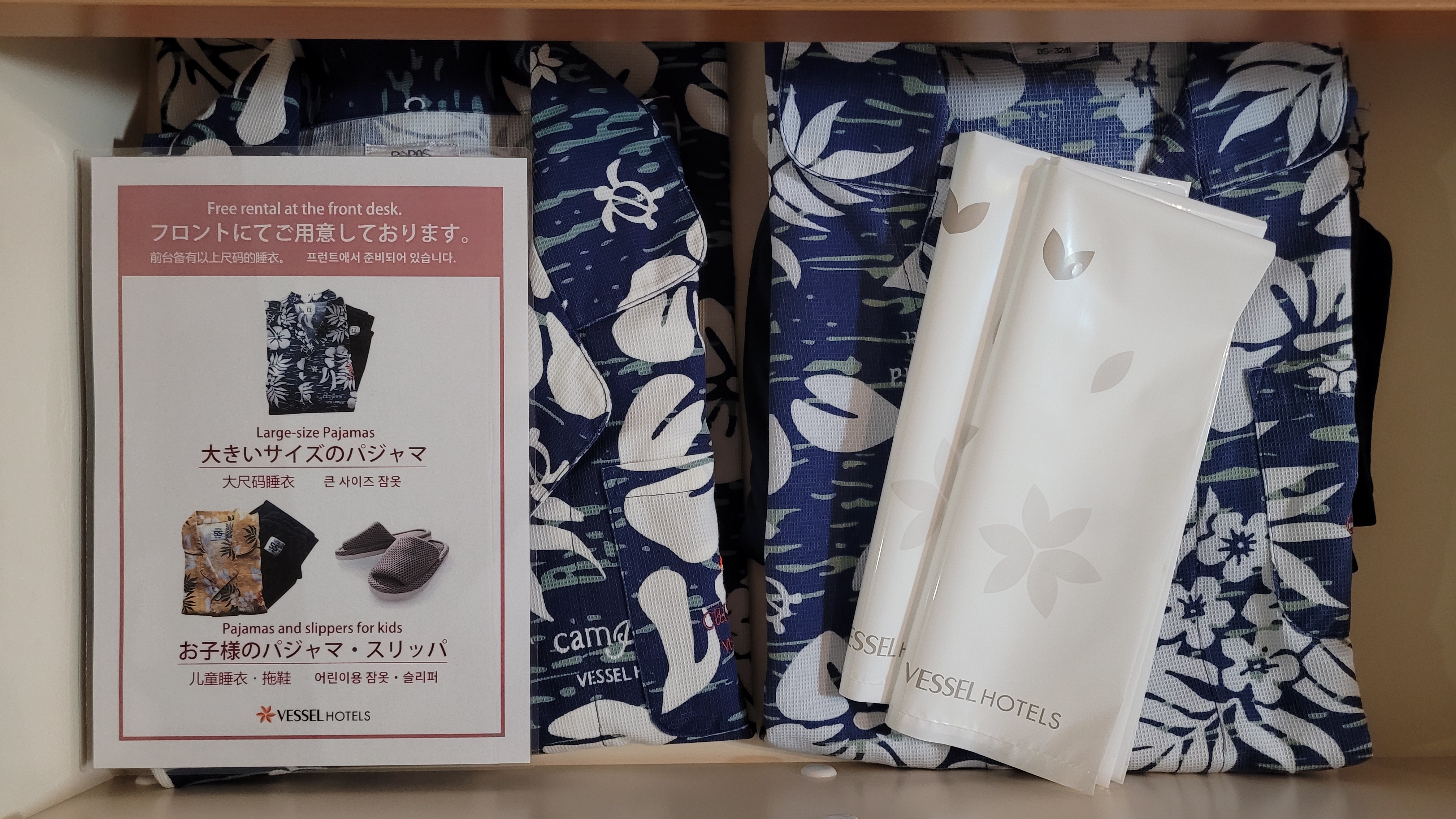 There were even two sets of pajamas in the TV stand drawer. They were a bit large for me, but my husband found them comfortable and wore them every day. It is mentioned that you can also borrow pajamas for kids if requested at the front desk.