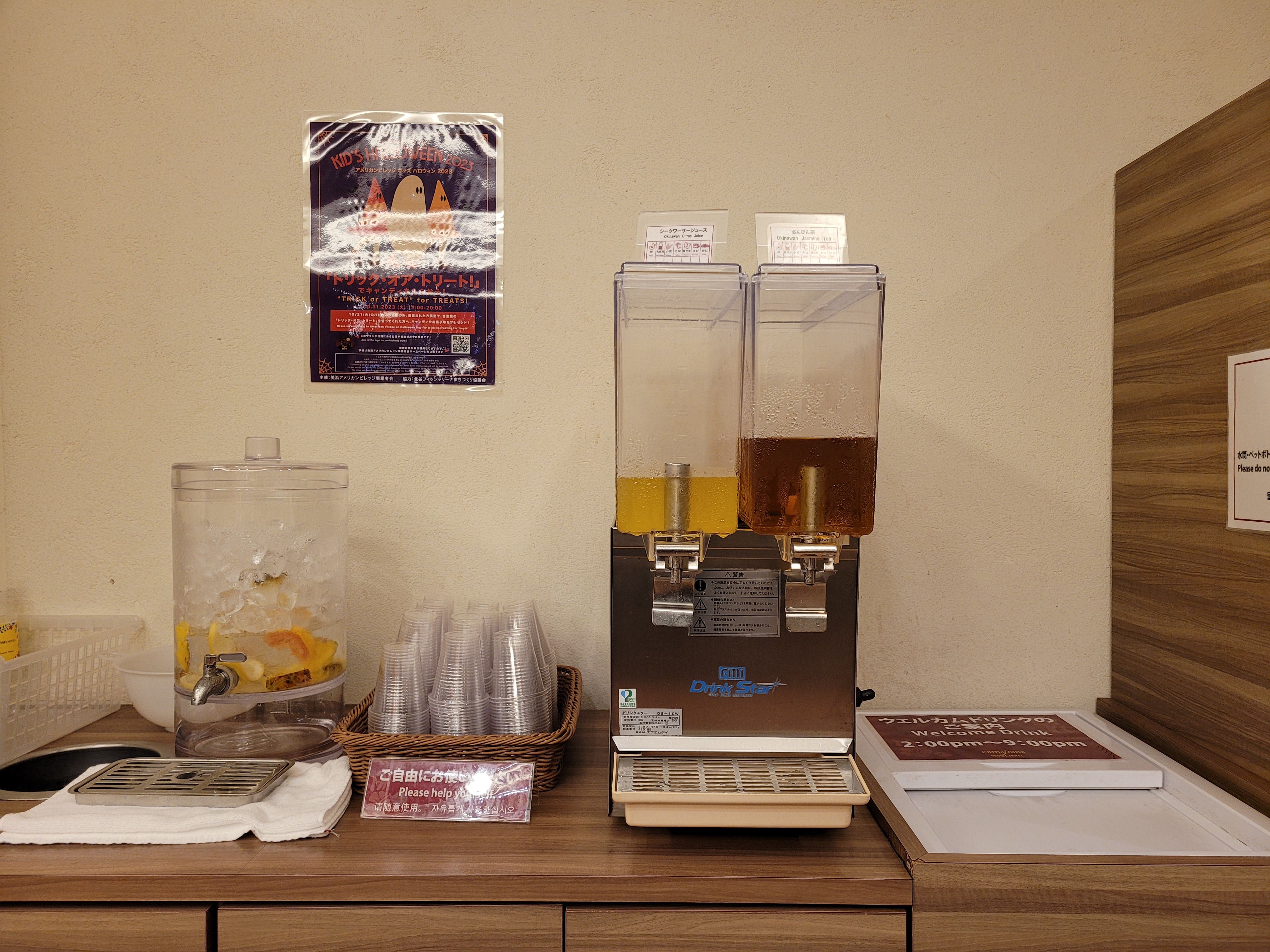 그리고 저희 아드님이 제일 좋아했던 웰컴 드링크 코너. 체크인 타임인 오후 2시부터 오후 9시까지 운영이 됩니다.