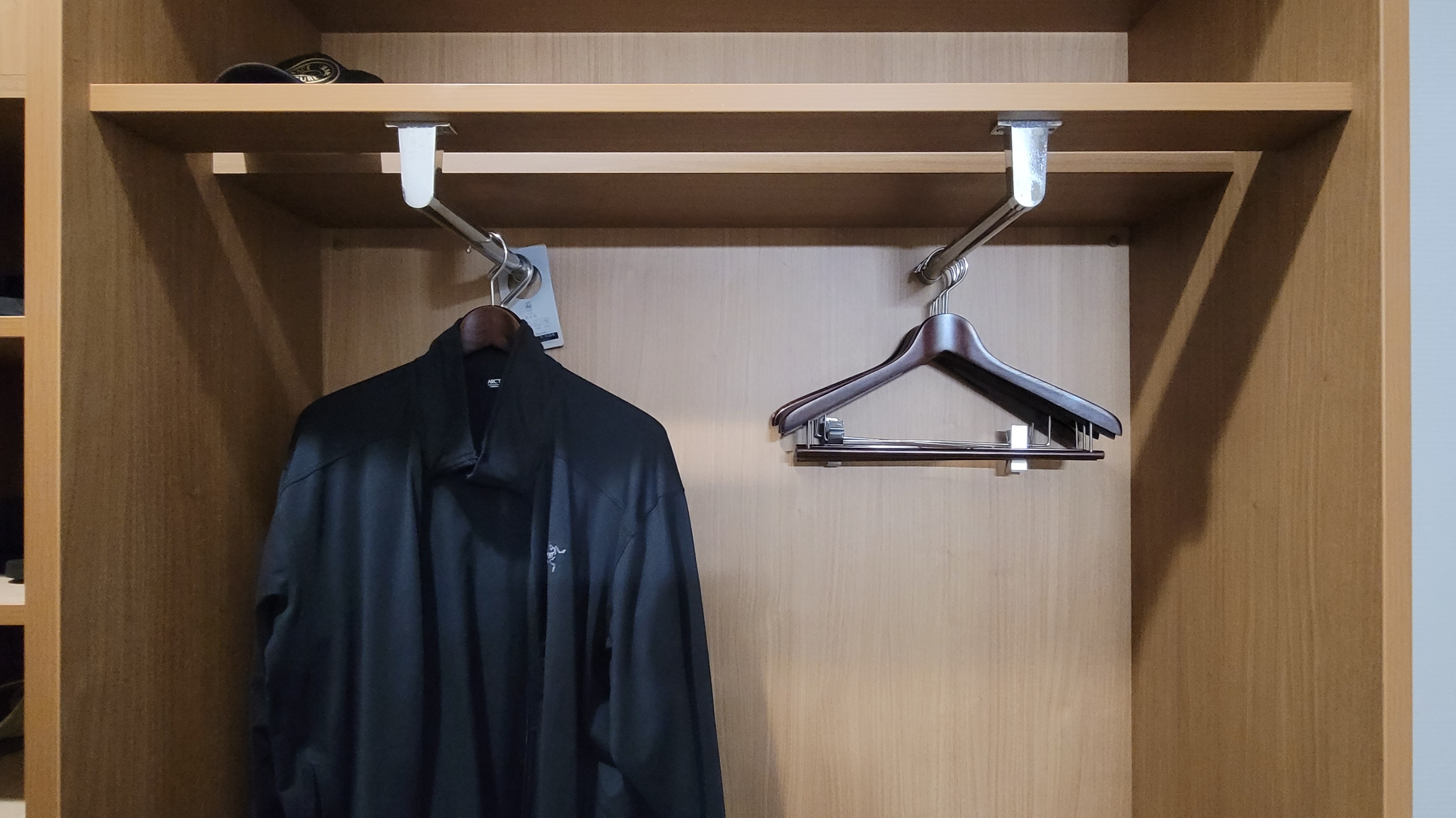 There was also a shoe rack, and they provided slippers for use in the hotel room as well as sandals for use within the hotel.