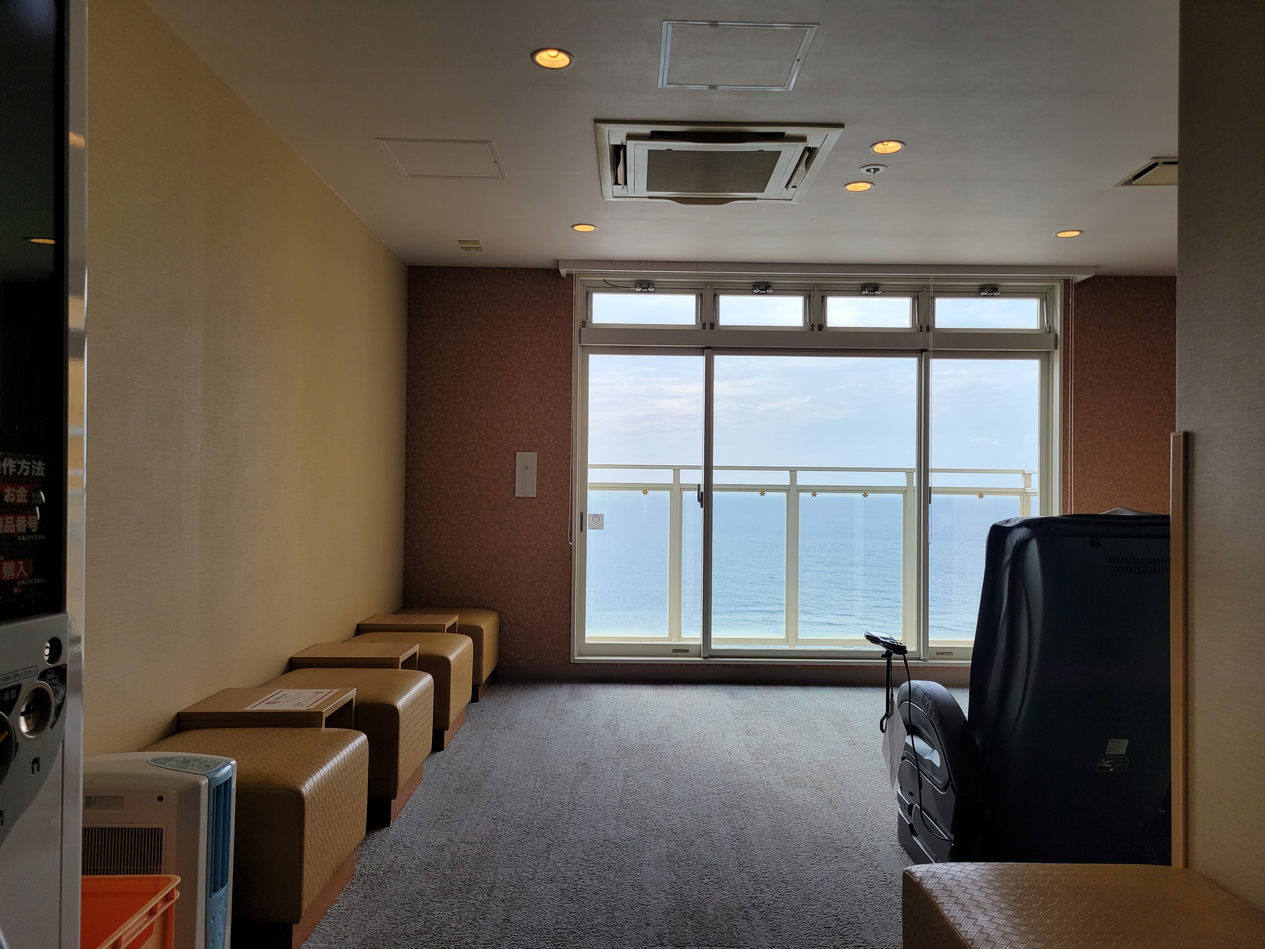 There was also a small lounge on the 10th floor. There were three vending machines, and you could enjoy a massage chair while overlooking the sea.