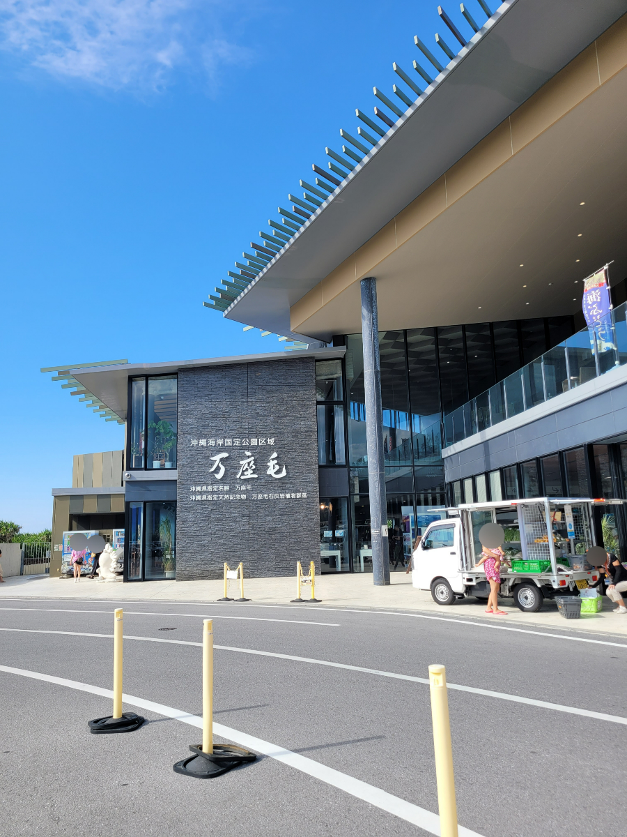 I went outside the building and walked along the coastal cliffs. There was a walking trail that goes all the way around the coastline. At the beginning of the trail, there's a unique rock formation that resembles an elephant's body, and it's the main viewing point. I asked a passerby to take a family picture for us, but they took it in a way that didn't include Manzamo, which was quite disappointing.
