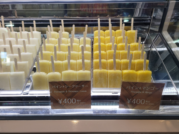 I wanted to have the popsicle, so I bought two flavors: Pineapple & Okinawa Lemon and Pineapple & Mango. I shared them with my child.