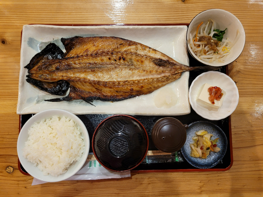 The mackerel had a crispy and delicious texture. It was a busy day, traveling here and there, but after having a warm bowl of rice, I felt a sense of fatigue relief.