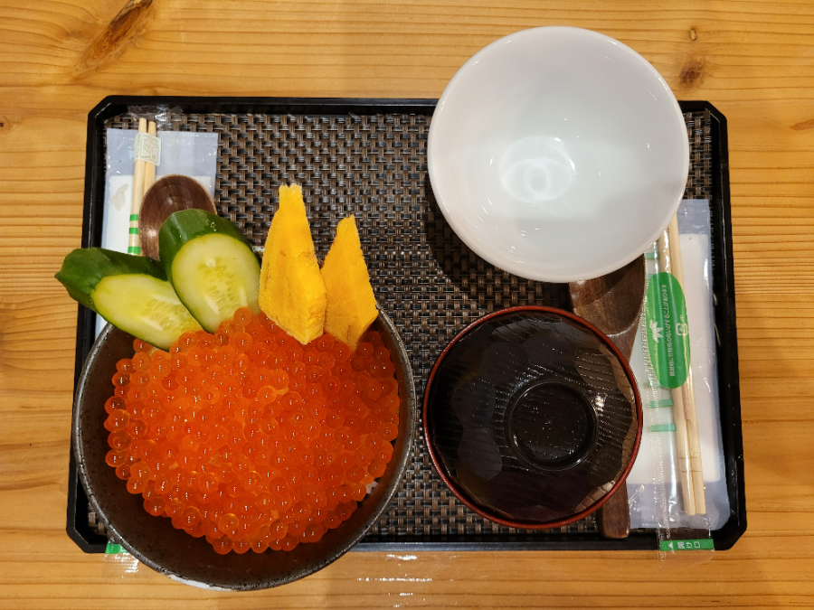 This is the salmon caviar rice bowl I had been eager to try! While enjoying it in Hokkaido might have been even more delightful, the experience of savoring it in another region of Japan was still quite satisfying.