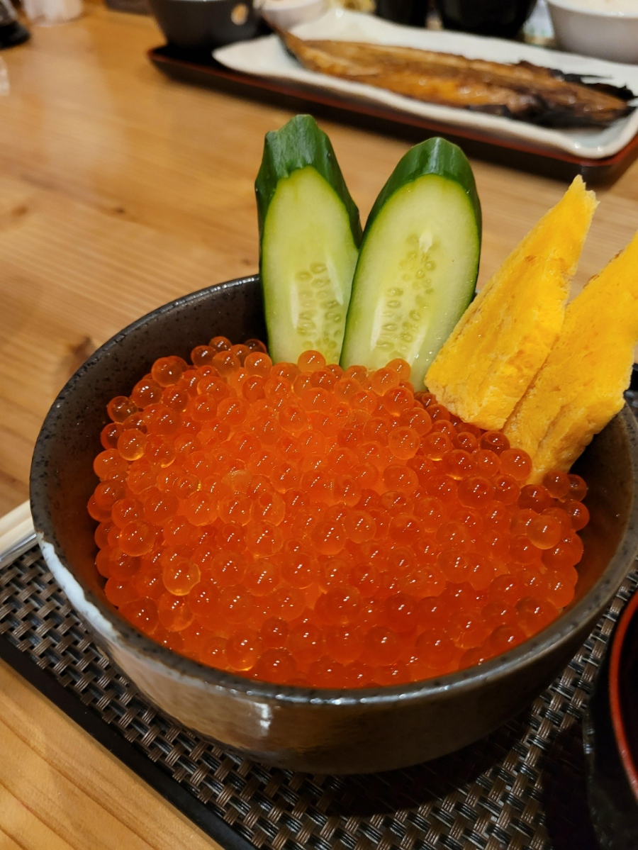 구글맵으로 저녁 먹을 곳을 찾다가, 호텔로 돌아가는 길에 평점이 좋은 곳을 찾았어요. (무려 4.6🤩) 홋카이도 출신 부부가 하는 식당이었는데 연어알 덮밥이 눈에 띄더라고요. 생선구이가 메인 메뉴 같았지만, 저는 연어알 덮밥이 먹고 싶어서 방문했습니다 :)
