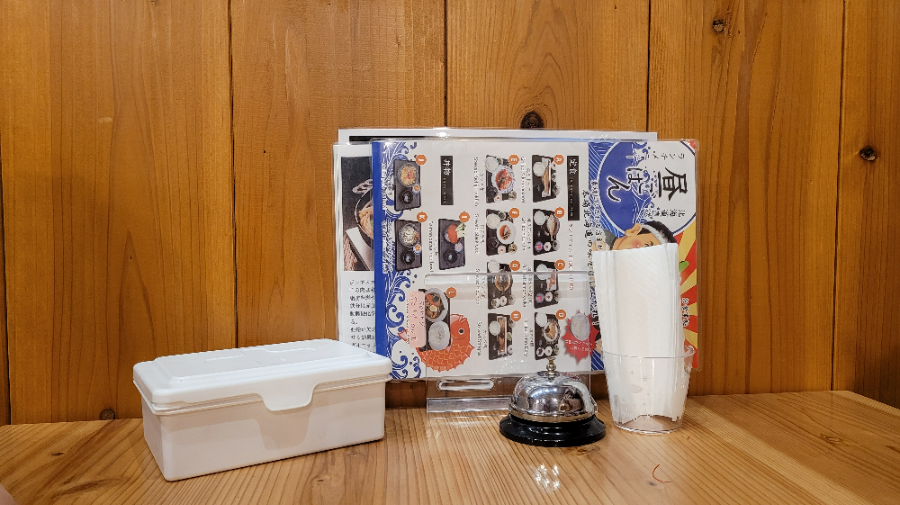 The seating options include both traditional low tables and regular tables. We chose the low table seating. The table was set with menus, tissues, and wet wipes. Since the menu had items labeled with alphabets, the staff asked us to specify our order using the corresponding alphabet.