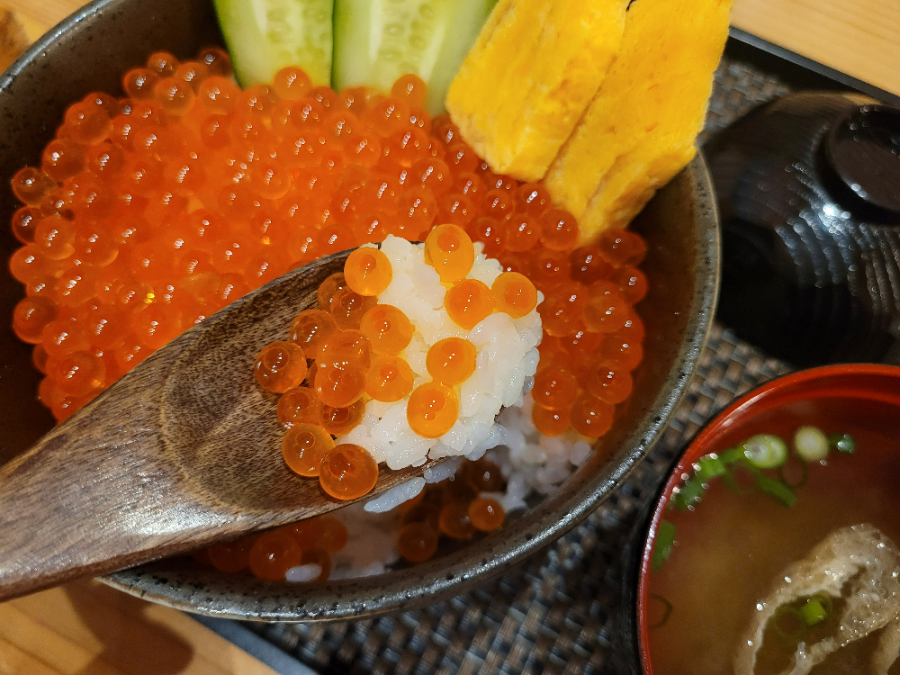 While searching for a place to have dinner, I found a highly-rated place on the way back to the hotel. It was a restaurant run by a couple from Hokkaido. Although grilled fish seemed to be the main dish, the salmon caviar rice bowl caught my eye.