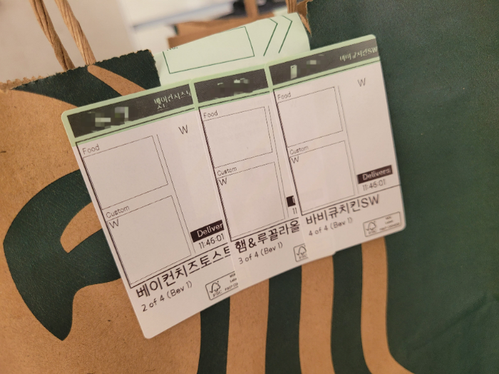 When using Starbucks Delivers, I found it convenient as I could still earn frequency rewards, and the payment process was as seamless as using Siren Order. The delivery fee of 3,000 won is also reasonable, so I think it's okay to use it occasionally when needed. Thanks to the free coupon giveaway event, I enjoyed brunch comfortably at home!