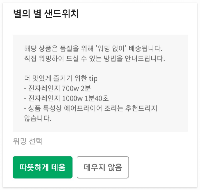 어떤 샌드위치는 워밍이 불가능하다고 써있네요. 별의 별 샌드위치는 고민하는 사이에 솔드아웃...😱
