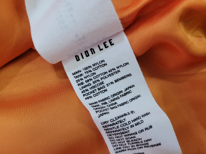 Recently I bought a jacket from a brand called 'Dion Lee.' Dion Lee is an Australian fashion designer known for his innovative and architectural designs. The brand is celebrated for its unique combination of structural elements, intricate detailing, and modern aesthetics. The bomber jacket I purchased also has a unique and structured design, reflecting the brand's characteristic style.