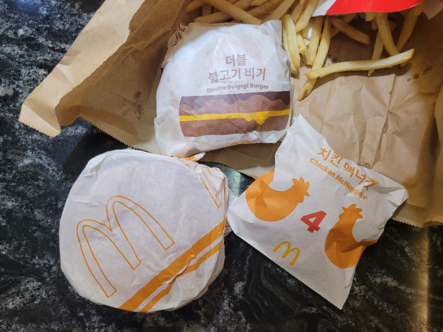아드님이 해피밀 맥너겟을 먹고 싶다길래, 주말에 맥도날드를 시켜먹었어요. 저는 연말 프로모션 메뉴인 미트칠리 BLT 버거를 주문했습니다 :)