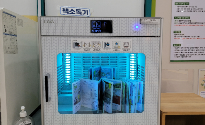 책 대출한 후에는 꼭 소독기 한 번 돌리고 집에 와요. 기계가 2대 있는데 소독하는데 1분 정도 걸려요.