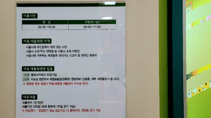 어린이 열람실은 평일은 09:00~18:00, 주말은 09:00~17:00 운영됩니다. 공휴일은 쉬고요. 책은 1인당 10권까지 대출가능한데 가끔 이벤트 할때는 20권까지도 빌릴 수 있습니다.