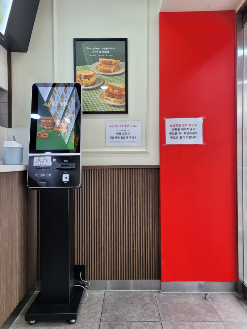 You can place orders through the kiosk (card payment only). For takeout orders, it seems you can also pre-order through Naver or Baemin Order.