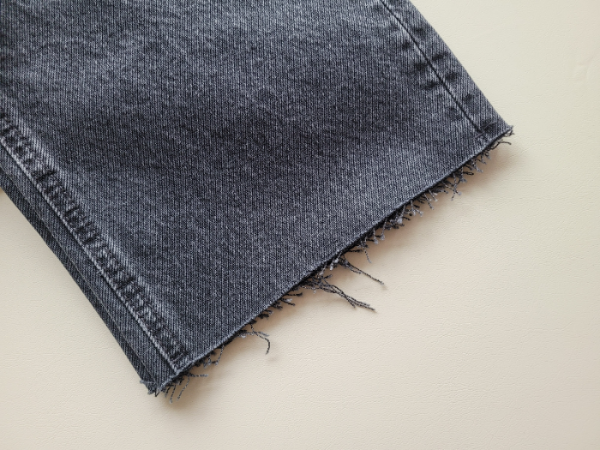 The hem has a cutting wash, providing a natural and frayed feel. Sometimes, I fold them when I wear shoes with low heels.