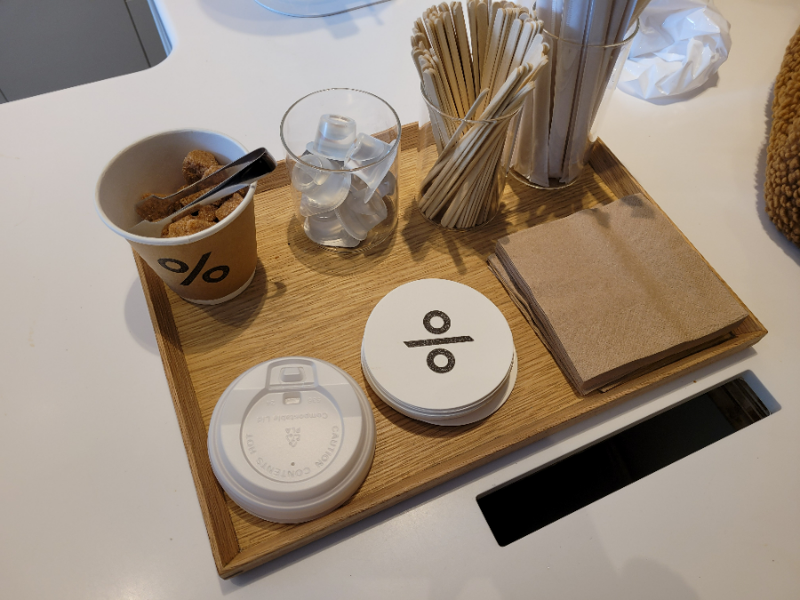 음료가 나오는 공간에는 시럽, 각설탕, 우드스틱 등도 준비되어 있어요.