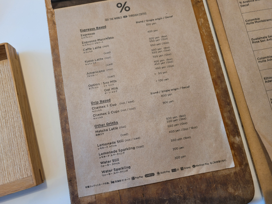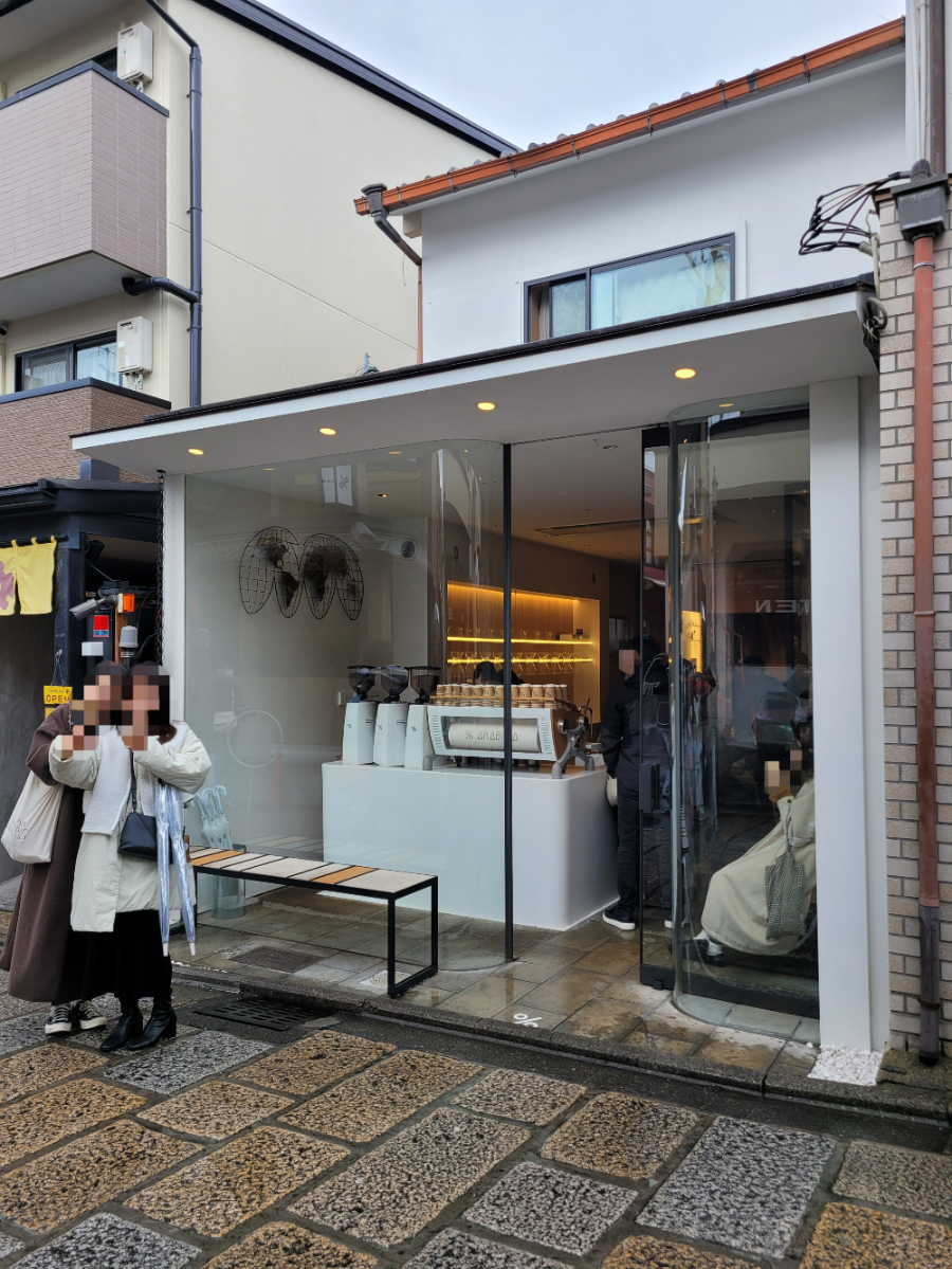 The "%" logo resembled the Korean character '응' (eung), making it feel more familiar to call it "응 커피" (Eung Coffee). While there are branches in Samseong-dong and Hannam-dong as well, this was my first time trying it in Kyoto.