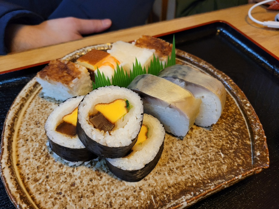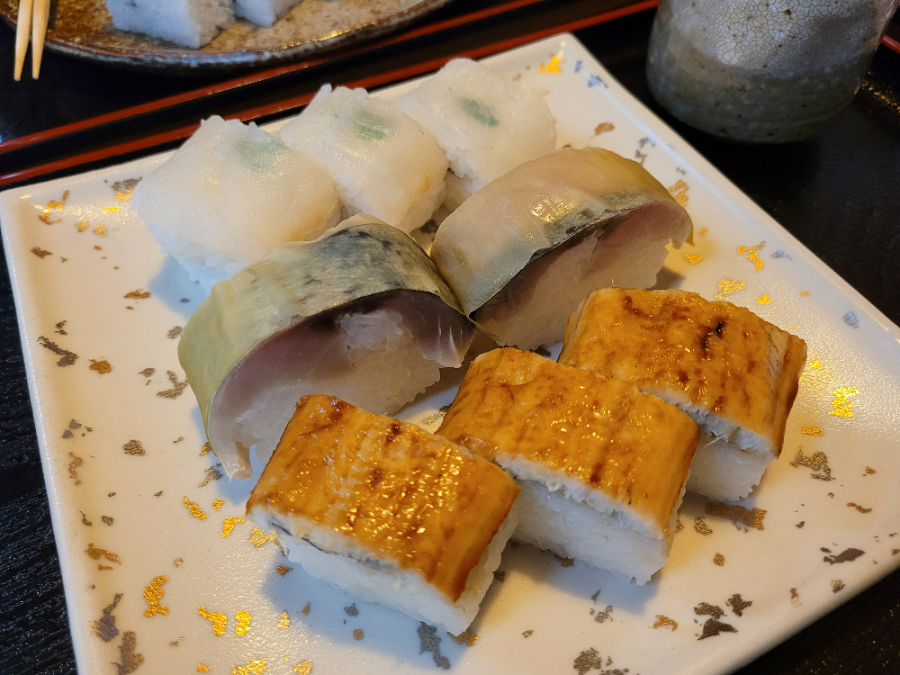 During my trip to Japan, I found myself having sushi almost every day. Among the various foods I tried in Kyoto, the mackerel sushi stood out as the most memorable.