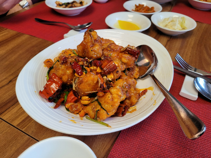 The Kkanpunggi (Fried Chicken with Garlic Sauce) was quite spicy. It's a deep-fried dish that slightly reminds me of beer.