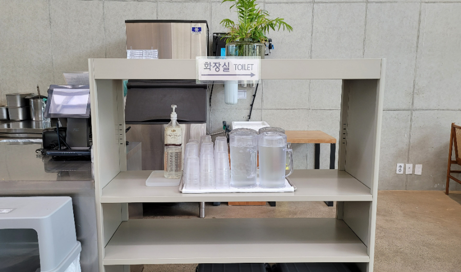 셀프존에는 물과 시럽이 준비되어 있습니다.