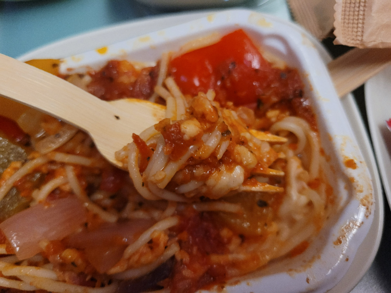 For the first meal, my child chose spaghetti. Special in-flight meals are served before the regular meals, so if your child has trouble eating on their own, it’s convenient because you can take care of your child first.