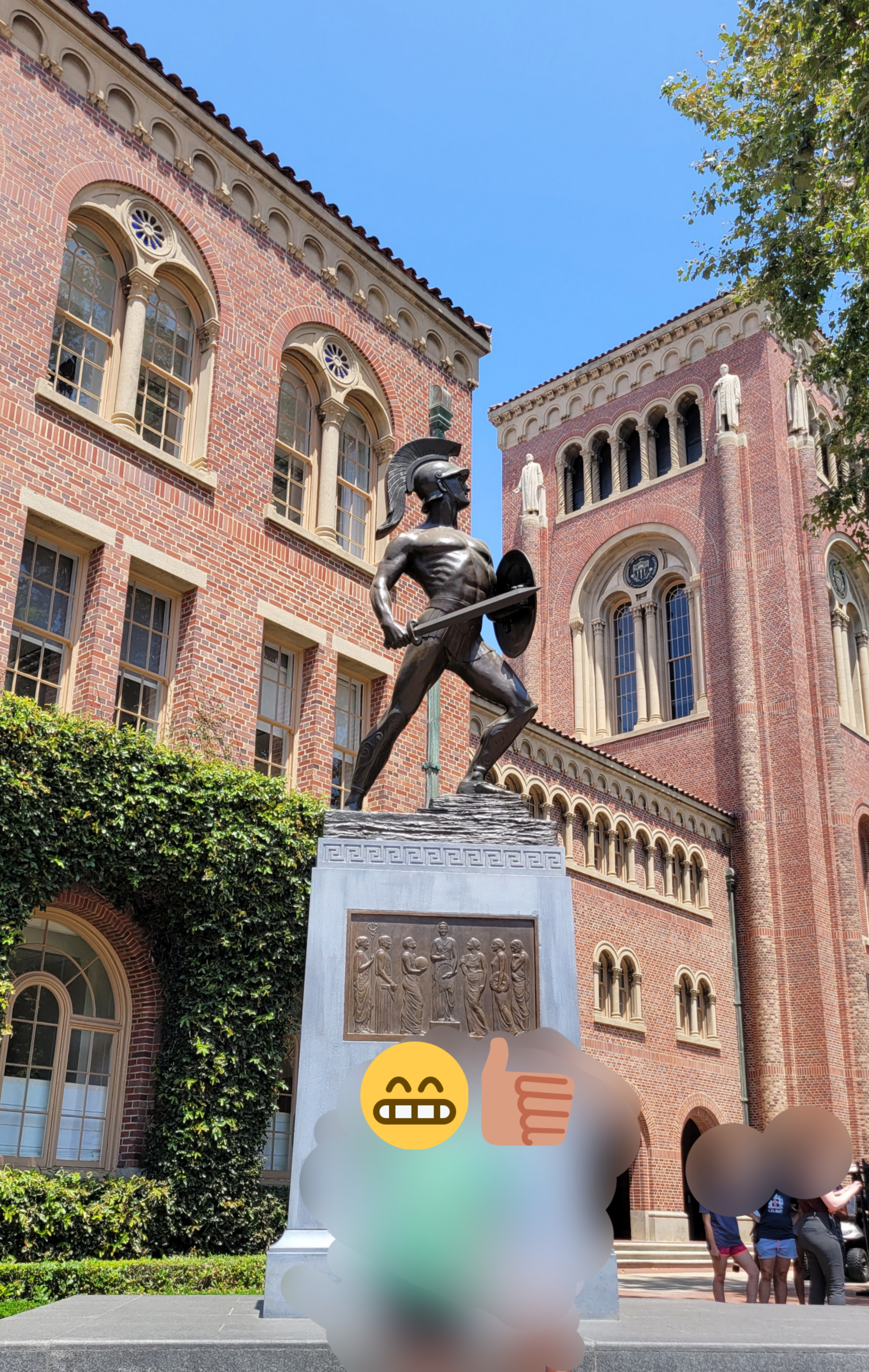 USC의 스포츠팀이 Trojans라, USC를 상징하는 백마 조각상 앞에서 사진 찍는 게 필수라고 하네요. (물론 트로이 조각상도 있음...)