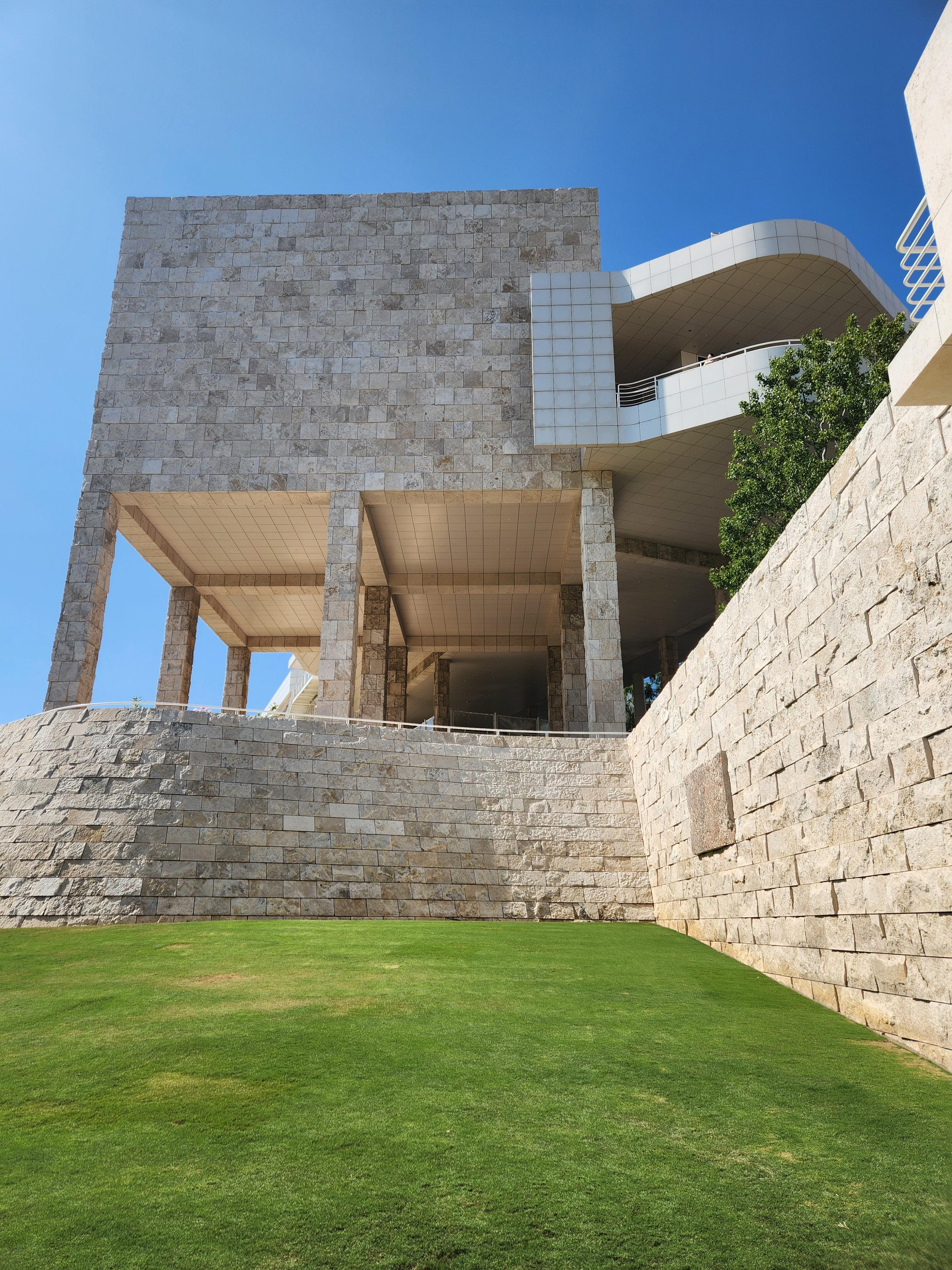 게티 센터의 건축물에 사용된 Travertine이라는 석회암. 맑은 하늘과 밝은 컬러의 건축물이 참 잘 어우러졌어요. 아이들은 이 잔디에서도 한바탕 뛰고...^^