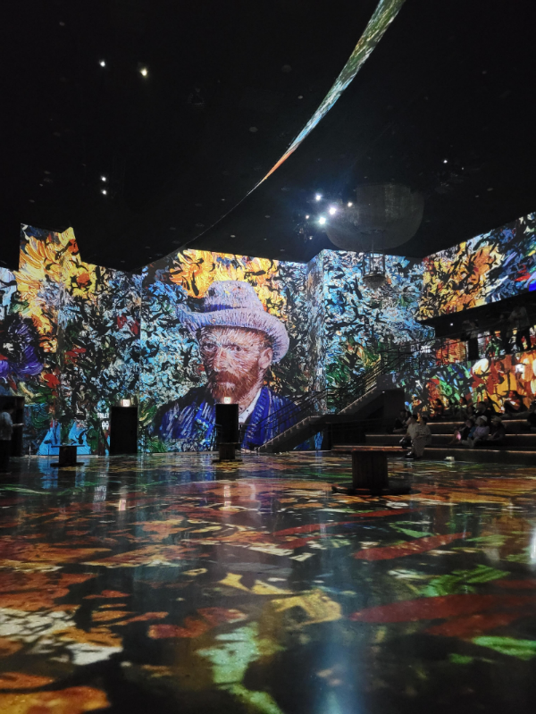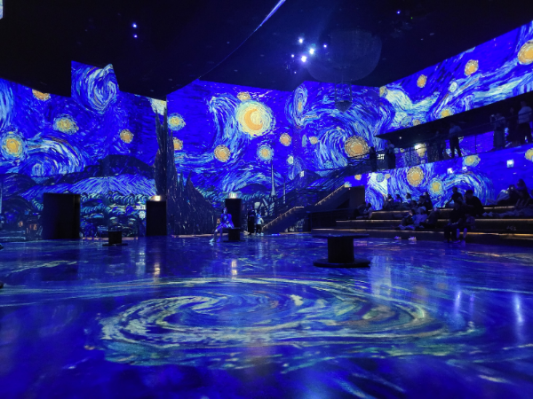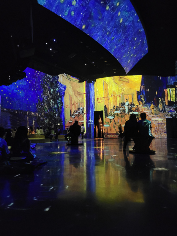 빛의 시어터와 가장 잘 어울리는 작품 두 가지는, 밤의 카페테라스와 별이 빛나는 밤이 아닐까 싶어요.