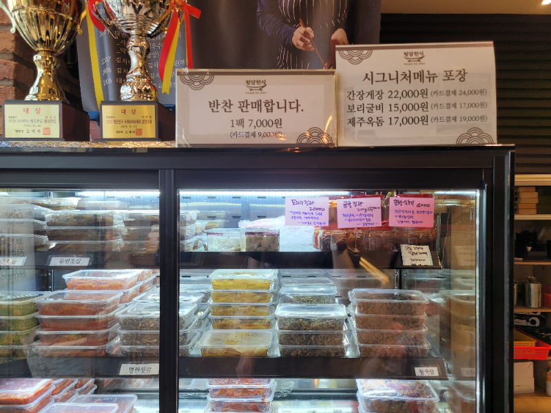 매장 입구에서는 반찬도 판매 중이었는데요. 지금 생각해 보니 연근 무침을 사 올 걸 그랬나 약간 아쉬움이 드네요.