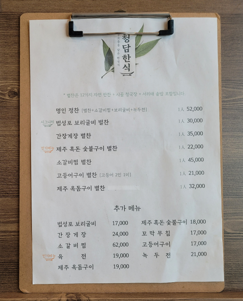 On a clear autumn day, I went to dine at Cheongdam Hansik with my in-laws. Located in the restaurant district near Seooreung, it’s a lovely spot for family gatherings, with clean and well-prepared dishes.