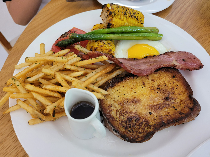 My child ordered the French Toast Brunch Plate, which included sweet and soft French toast, fries, and bacon—everything my child loves.