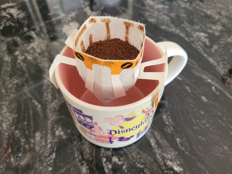 I brewed the coffee in my beloved Starbucks Disneyland Discovery Cup.