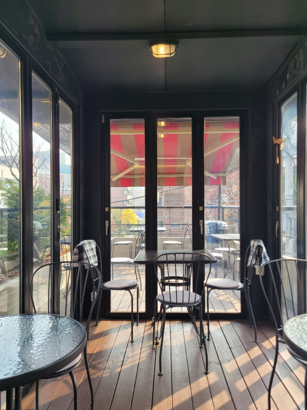날이 추워서 테라스 개방은 하지 않았더라고요. 문이 꼭꼭 닫혀있지만, 햇살이 좋다 보니 춥진 않았어요. 담요도 준비되어 있습니다 :)