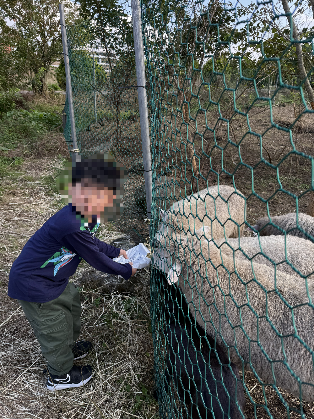 Each person received one pack of food to feed the animals, and we got to feed the sheep on the other side of the fence. The sheep seemed really hungry, which made it a fun experience to feed them.