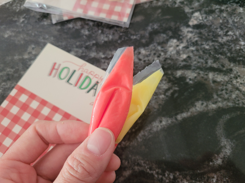 아이싱은 기본 냉장보관인데요, 실온에 잠깐 두면 부드러워져서 사용하기 좋아요. 끝부분을 살짝 잘라낸 후 사용하면 됩니다.