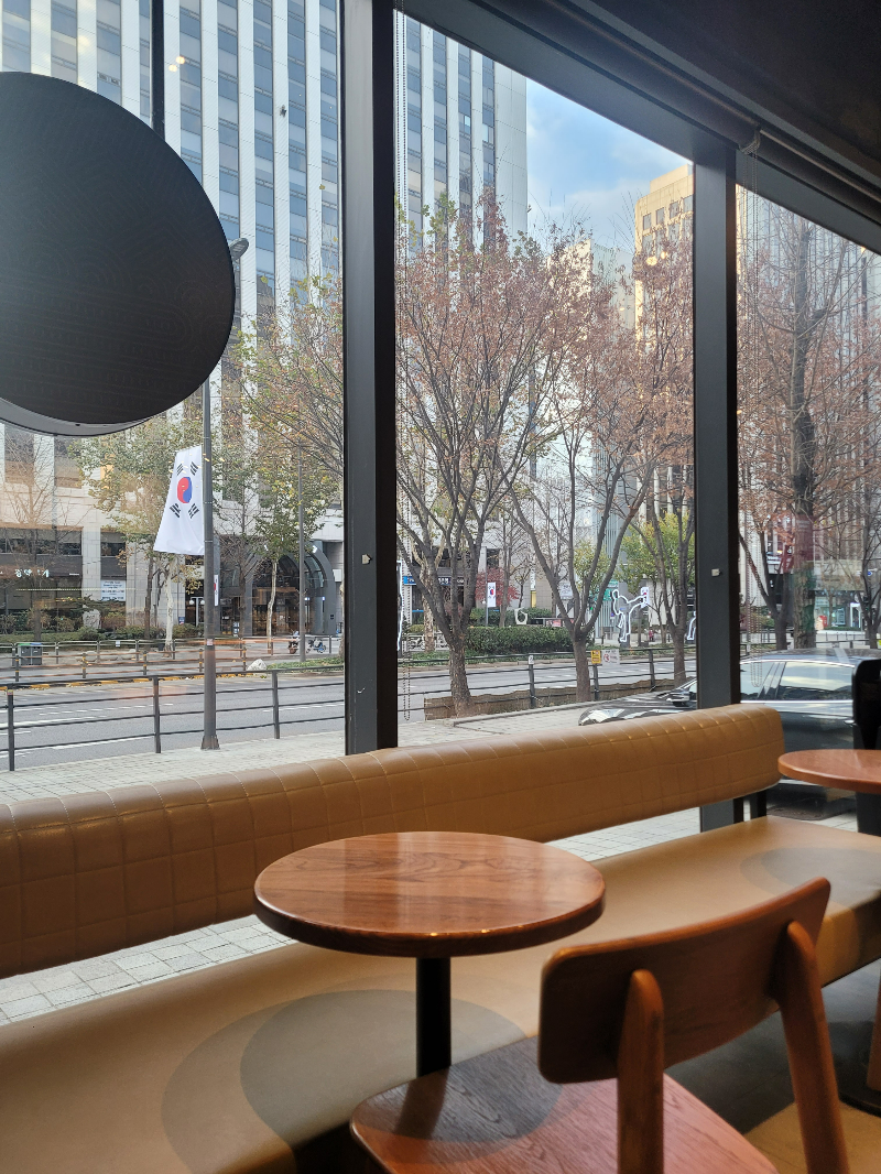 오전 9시 심사 시작이라, 태권도장에는 7시 30분까지 아이를 보내고- 저도 바로 강남역으로 향했어요. 너무 일찍 도착했는지라... 스타벅스에서 커피 한 잔 마시고, 8시 50분에 심사 참관을 하러 갔어요.