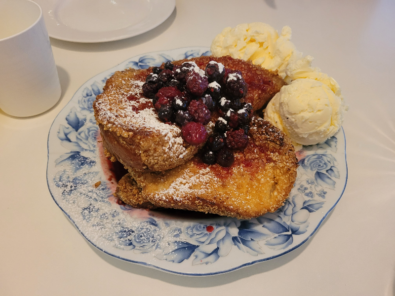 짝꿍은 아이스크림과 베리 콤포트가 올려진 프렌치토스트를 주문했는데, 결국 1조각이 남아서 포장해서 집에 가져왔어요. (다음날 따로 1조각만 에어프라이로 돌려먹으니 매우 맛있었음...)