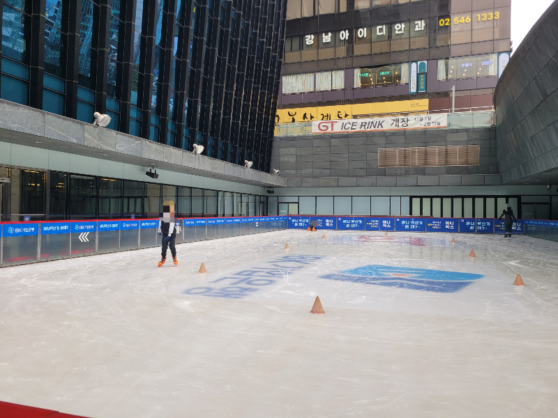 심사를 무사히 마치고, GT타워 지하 1층에 위치한 '더 플라잉팬 레드'에 브런치를 먹으러 갔습니다. 레스토랑 앞에는 미니 아이스링크(GT ICE RINK) 도 생겼더라고요. 하키 훈련 때문에 스케이트장을 자주 가다 보니 크게 새롭진 않았지만, 아이들과 함께 놀러 가거나 데이트하기엔 좋아 보였어요. 2025년 2월까지 운영 예정이라고 하네요 :)