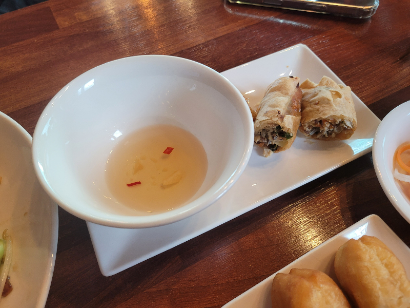 I also ordered a dish of spring rolls. They were crispy and delicious, especially when dipped in the tangy sauce.