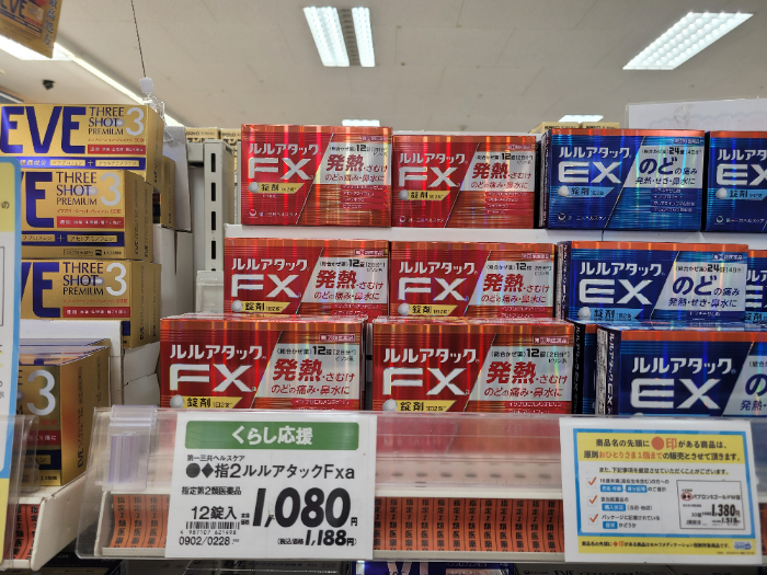 아이도 어른들도, 바닷바람 때문인지 감기 기운이 있어서 종합감기약도 여러 개 구입했어요. 사진 왼쪽의 빨간색 FX는 아세트아미노펜이 포함된 종합 감기약인데요. 저는 먹어보진 못했지만, 즉각적인 효과는 좋다고 하더라고요.
