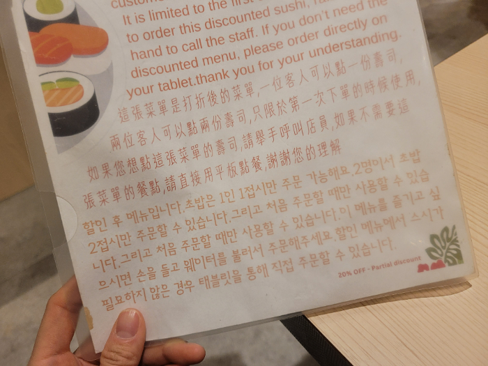 한국인들이 많이 찾다보니, 한글 메뉴도 있더라고요. 1인 1개만 주문 가능한 할인 메뉴가 있어, 2가지 주문해보았어요.