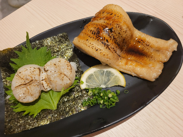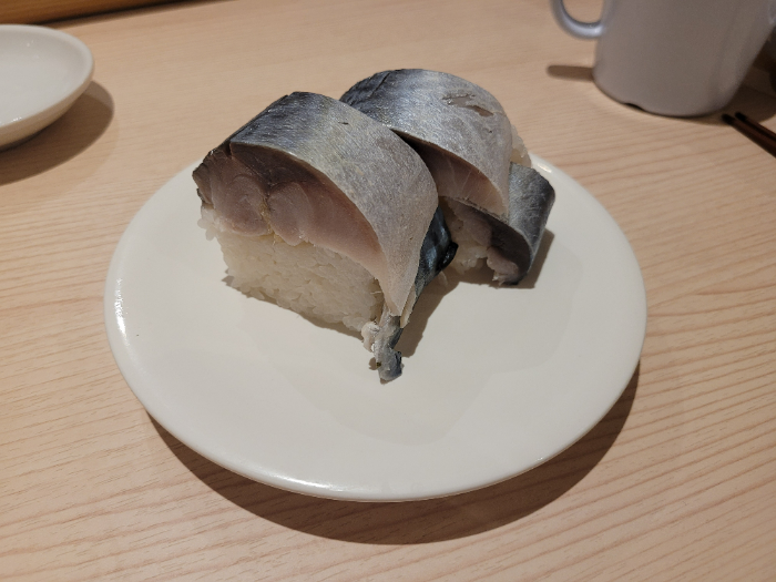 단품 중 고등어 초밥이 있길래 주문해보았는데, 크기가 엄청 컸어요. 교토에서 먹은 초밥보다는 아쉬운 맛이지만, 고등어 자체의 풍미는 좋았어요.